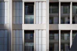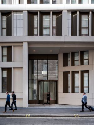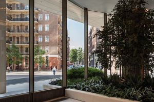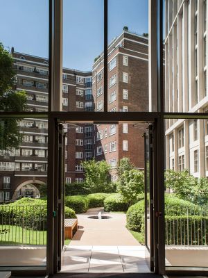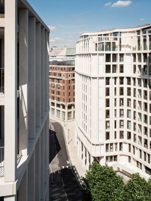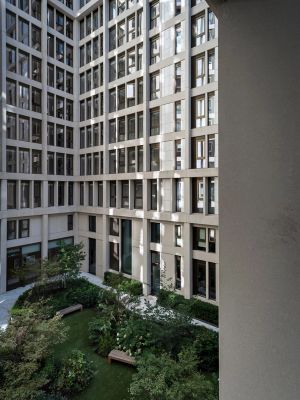 Abell & Cleland are two handsome stone-fronted blocks that face each other across opposite sides of John Islip Street, close to Tate Britain in Westminster. The biggest, Abell, contains 141 private homes while Cleland houses 118 homes, around two-thirds of which are affordable. All the apartments are arranged around generous landscaped courtyards and glazed lobbies, which offer uplifting views into the gardens beyond and animate a previously unremarkable street. The scheme replaces two formidable 1930s ministerial buildings and mediates between the monumental scale of modernist blocks by Lutyens and Ward and the tight historic urban grain of Horseferry Road to the north, while the curved forms of Cleland’s facade echo the Baroque architecture of St John’s on Smith Square. The articulate massing of Abell & Cleland successfully negotiated a number of complex constraints determined by the site’s historic setting; the challenging rights of light/sunlight envelopes determined by the neighbouring buildings; and by its proximity to security-sensitive MI5. Moreover, with its exceptional density score of 319 dwellings per hectare, Abell & Cleland provides a model for the sustainable densification of the city. In terms of site usage, the scheme is 2.1 times more dense than Erno Goldfinger’s seminal Trellick Tower, built in north Kensington in 1972. Furthermore, were Trellick Tower to achieve the same level of density as Abell and Cleland, it would need to be 66 storeys high, well over twice its current height. Amenity space such as gardens and communal areas are often thought to be one of the elements sacrificed to deliver high density, but here, by cleverly deploying the courtyard model in conjunction with the gardens and generous lobbies, we successfully balanced density with beauty and delight, delivering a substantial number of double-aspect flats and avoiding oppressive perimeter walls. All the elements that modernist slab housing usually failed to achieve. The exoskeleton that encases the buildings also allowed the insertion of terraces and balconies between the two skins of the facade, extending the pattern of private and shared amenity vertically as well as horizontally.