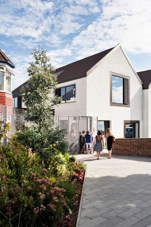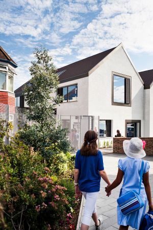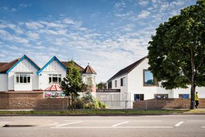 The suburbs have always been sites of enterprise and invention and in Sutton, a group of parents came together to offer an answer to their children’s educational needs by setting up Link Day Schools — a charity providing primary, secondary and sixth form schooling for pupils with learning difficulties, including autism. Having been founded in two 1930s semidetached houses, and then gradually expanding into more residential properties on the same street, the charity’s building stock was no longer meeting the needs of these high-performing schools. DSDHA was thus asked to prepare a phased strategic masterplan for the school’s development. Phase One provide a new learning centre with facilities for occupational therapy. The building is both resolutely contemporary yet in dialogue with its modest mid-century surroundings. It sensitively responds to the residential context, whilst giving a more civic and dignified character to the educational complex.