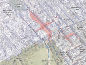 The Green Park & Piccadilly Gateway is a key central London destination which provides the predominant arrival point into Mayfair, St James’s and the Royal Parks for tourists, local workers and residents. With many high-profile projects being implemented over the coming years, the Green Park & Piccadilly Gateway is experiencing a significant amount of public realm, infrastructure and development activity. DSDHA and Urban Flow were commissioned by the Heart of London Business Alliance (HOLBA) to develop the concept design for a transformational public realm scheme for the Green Park & Piccadilly Gateway, which includes the length of Piccadilly from Bolton Street to St James’s Street/Albemarle Street, as well as the gateway streets into Mayfair (Berkeley Street, Stratton Street & Mayfair Place) and St James’s (Arlington Street & Bennet Street). Through an in-depth engagement process with HOLBA, the project partners (Berkeley Estate Asset Management, Crosstree, Pontegadea and The Ritz) and wider stakeholders, a Public Realm Vision Framework was developed in order to articulate a shared holistic vision and key aspirations for the Green Park & Piccadilly Gateway. The Public Realm Vision Framework encapsulates the overall project aims and ambitions; creating a green gateway, within a safe and accessible setting, that complements the historic character and heritage assets and is befitting of a globally renowned destination.