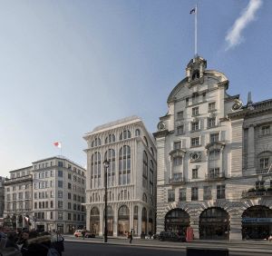 The four facades address Piccadilly and Wren’s Grade I Listed St. James’s Church to the south, Swallow Street (connecting to Regent Street) to the west, Vine Street to the north, and to the east Piccadilly Place, adjacent to Norman Shaw’s Listed Piccadilly Hotel.