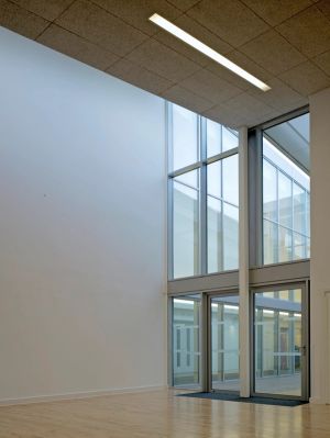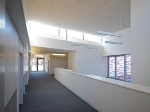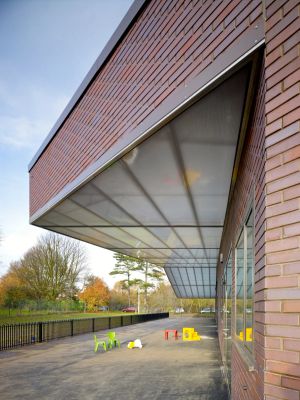 The new single-storey building is designed around the concept of an evolving journey through the building; every classroom is different with its own particular views and spaces. The overall layout is organised around 3 courtyards marking the three zones of the Lower School, Upper School and shared Community areas. Classrooms are located around the perimeter, maximising natural light and ventilation and allowing direct access to secure and sheltered outdoor play areas.