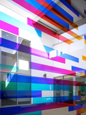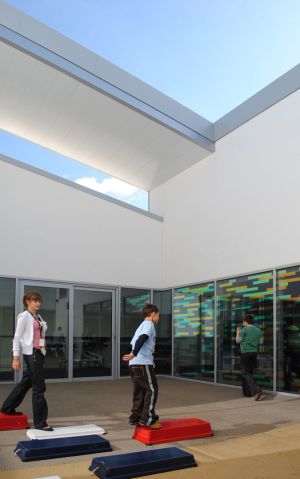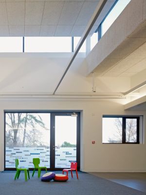 The differing eye levels and differing degrees of special needs of the pupils of all ages have inspired the different levels of the windows.