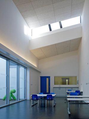The roof form undulates long the length of the building reflecting the diverse accommodation below, which includes a hydro-therapy pool, sensory reading area, art studios and specialist ICT provision. These allow the children to appreciate their individual journeys with views of sky and landscape beyond.