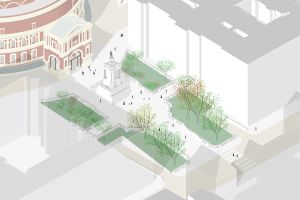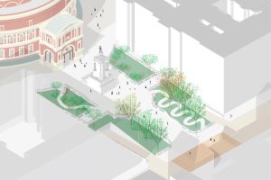 The proposals are built upon extensive research and analysis into the safety, movement and behaviour of users around the Hall, which revealed specific hotspots for photos – the Royal Albert Hall and the Albert Memorial are two of London’s most visited and photographed monuments – areas of crowding and vehicular conflicts at performance arrival and departure times, and desire lines leading to and from the Hall. The research was enabled by the Research Fellowship awarded to Deborah Saunt by the Royal Commission for the Exhibition of 1851 in February 2010. Awarded biennially, the Fellowship supported an intensive research programme to develop conceptual ideas and a long-term vision for the Commission’s legacy estate in South Kensington.