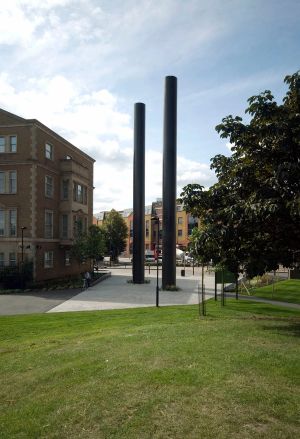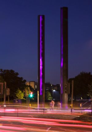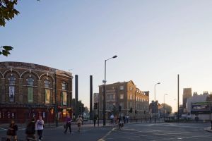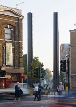 The vision behind the framework focused on improving the fabric of the park while celebrating the indulgent atmosphere of the historical Pleasure Gardens in order to raise awareness and pride of place. Five phases have since come to fruition: a new tree-lined square and sports pitch; a spectacular new entrance next to the grade II listed Royal Vauxhall Tavern (RVT); the remodelling of the mounds to create a landscaped amphitheatre at the centre of the park; new path infrastructure, including a ‘Cherry Tree Walk’; and pedestrianisation of the former turning head adjacent to the Tea House Theatre to create a new area of public space. At the new gateway to the park, two monumental columns affirm Vauxhall’s unique qualities, referencing the park’s past and celebrating its present. The columns are purposely forceful and demand attention, as if insisting that the passers-by lift their eyes from their smartphone screens and be present and aware of their surroundings.